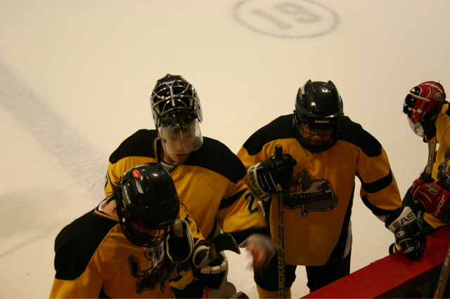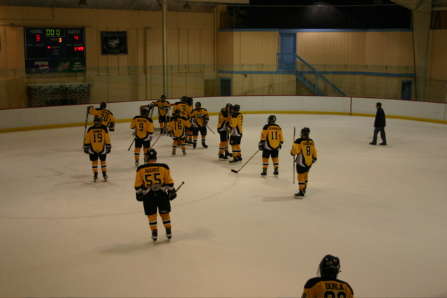 The Squirrels got on the board in the second period when Chris Long forced a turnover deep in the zone, and passed to Ben Sumner who scored with a pinball shot through the goalie’s pads. In the third, Adam Hughes finished off a Don Marks led flurry around the net for the Squirrels’ second goal.